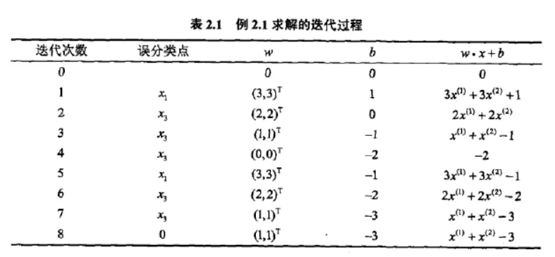2. 取$x_{1} = (3, 3)^{T}$,$y_{i}(w \cdot x_{i}+b)=1(0\times3+0\times3)=0$,误分类