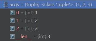 传入的参数会被视为 tuple 类型,len=传入参数个数