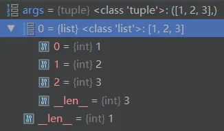传入的参数会被视为 tuple 类型,len=传入 list 个数
