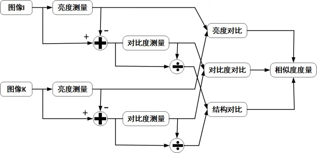 SSIM(I,K)=[l(I,K)]{\alpha}[c(I,K)]{\beta}[s(I,K)]^{\gamma}