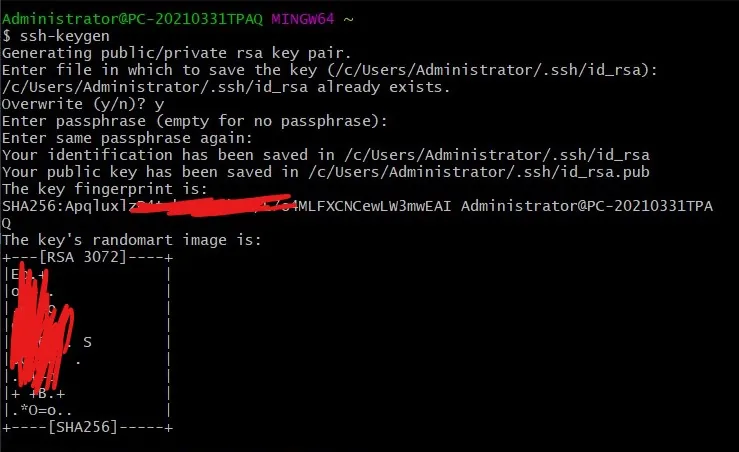 在客户终端输入以下代码,一直回车,此命令会在 .ssh 目录下创建两个密钥:id_rsa 私钥和 id_rsa.pub 公钥