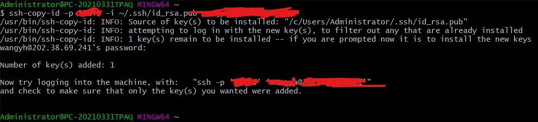 外网:ssh-copy-id -p 端口号 -i ~/.ssh/id_rsa.pub 用户名@ip 地址