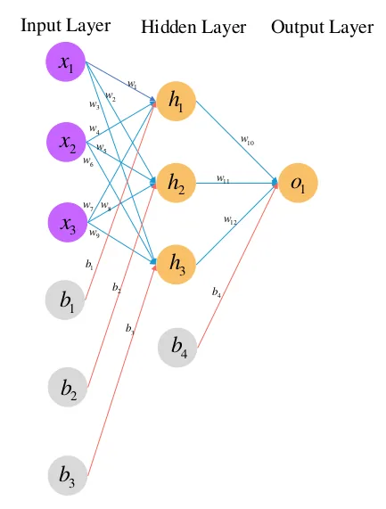 神经网络包括神经元,输入$X$,激活函数$f$,权重$W=[W^{0}, W{1}…W{n-1}]$和偏置$b=[b^{0}, b{1}…b{n-1}]$