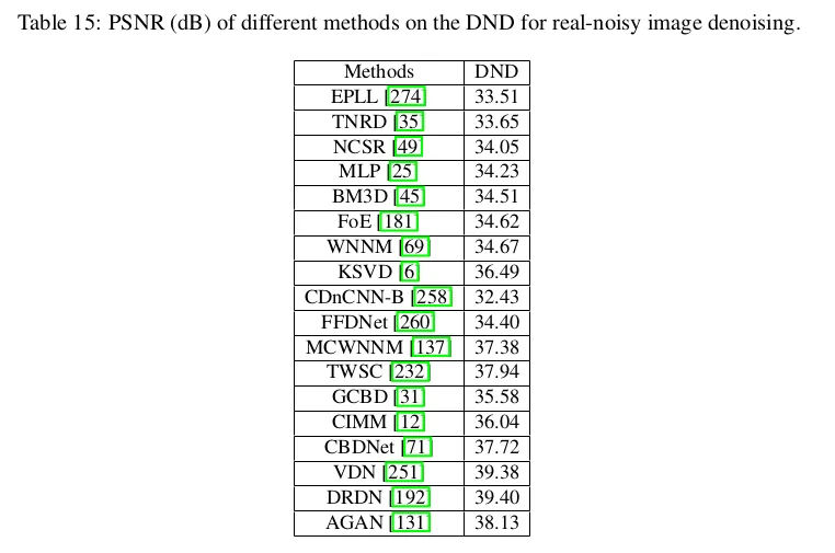 Table 17:compressed noisy images. AGAN obtains excellent performance.