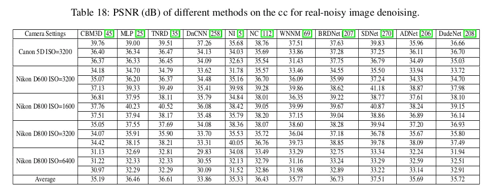 Table18:real noisy images of different IOS value, SDNet and BRDNet achieved the best and the second-best denoising performance.