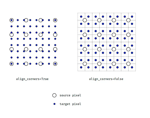 关于 align_corners 参数的用法:给出 PyTorch 论坛的讨论链接。下面是相应的图解