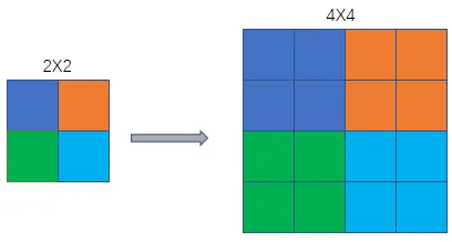 Here is a simple illustration I made showing how a 4x4 image is upsampled to 8x8.