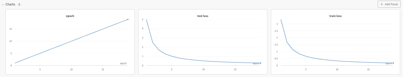 wandb.log({"test loss": 10/(2*epoch), 'epoch':epoch})