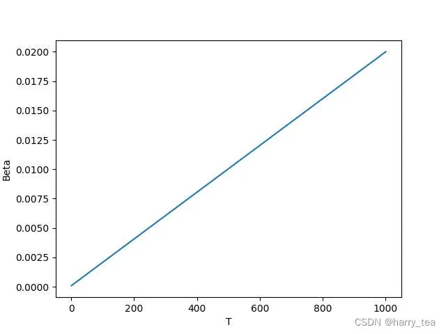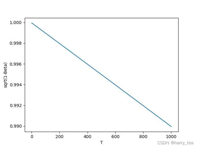 下面是$\beta_{t}$和$\sqrt{1-\beta_{t}}$随着$T$增加的变化曲线