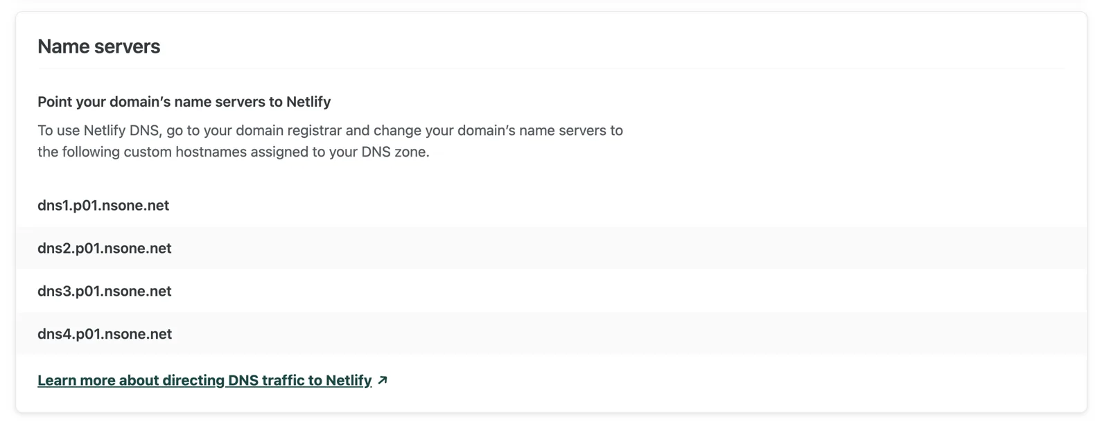 更改默认的 DNS 域名服务器为 Netlify 提供的那几个服务器即可。随后,在 DNS record 部分就出现了对应域名服务器的 NS 记录了
