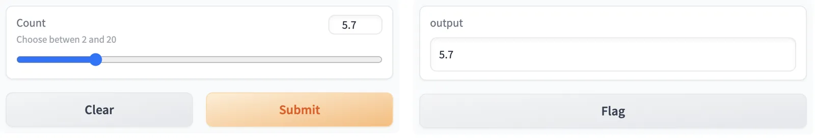 [gr.Slider(2, 20, value=4, label="Count", info="Choose betwen 2 and 20"),],