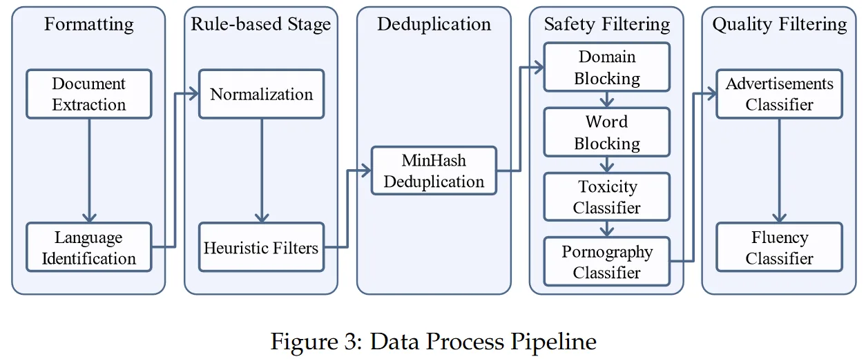 训练分为三个阶段,dataset preparation,model pretraining,alignment,这点好像没有什么特别的