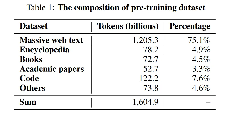 用了 1.6T 的 token 数据,主要进行中英的训练,其他语言也有,但是很少