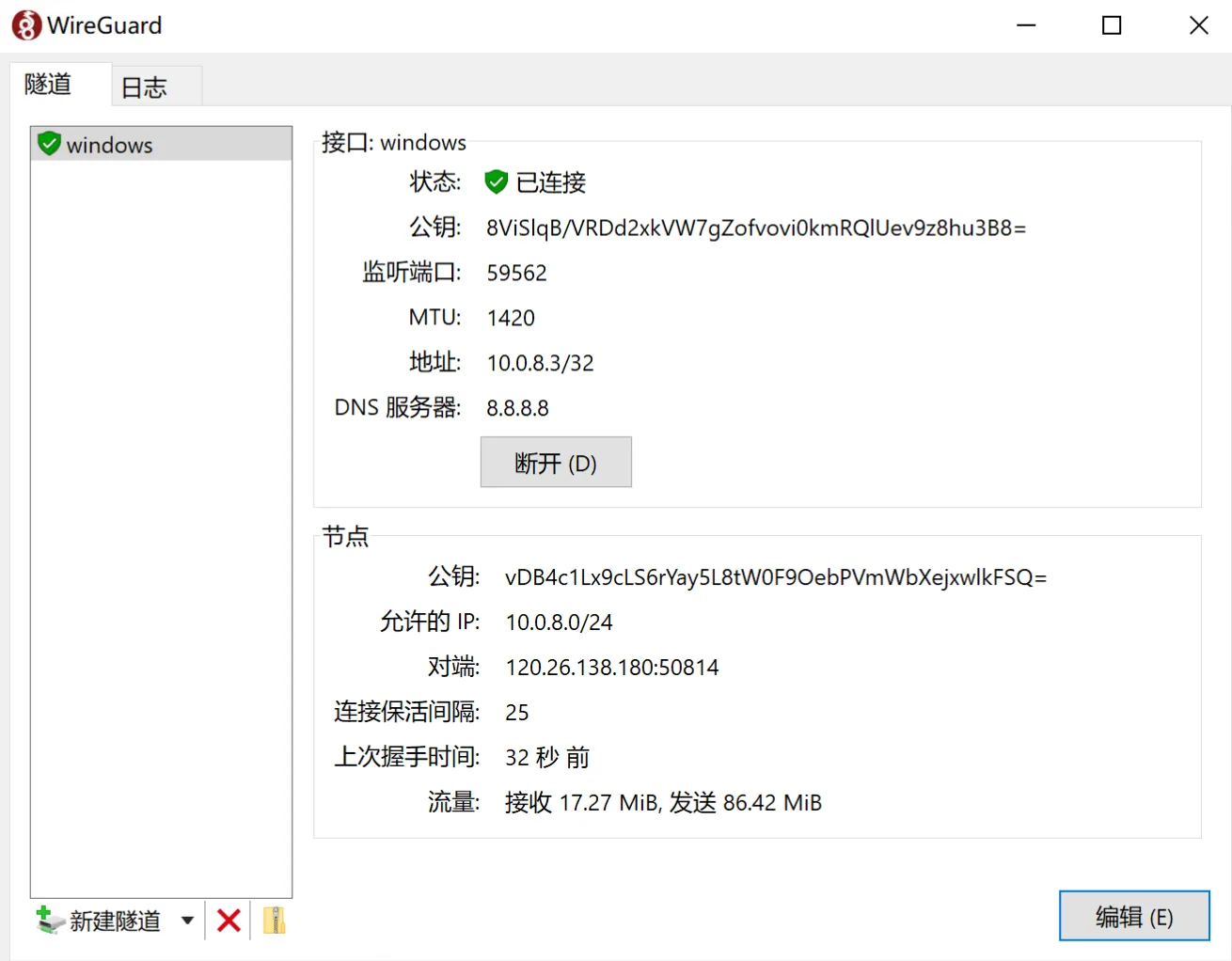 PublicKey = [服务器公钥]