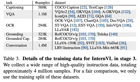 第三阶段就是监督学习了,其实就是 next token prediction,选择微调 mlp 或者 mlp 和 QLLaMA,微调数据集一共 4M 左右